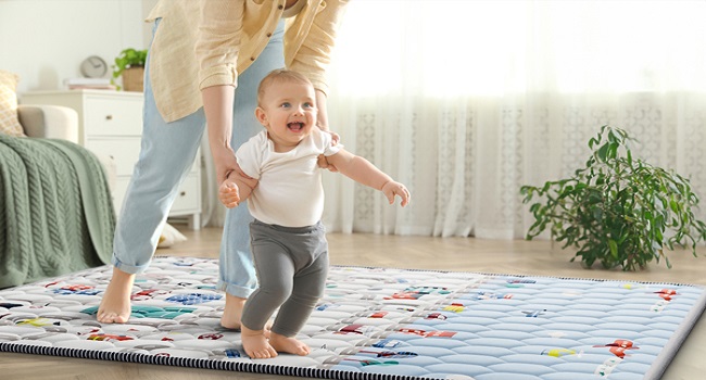 This baby floor mats with thick & soft microfiber padding makes it perfect for baby crawling and playing.